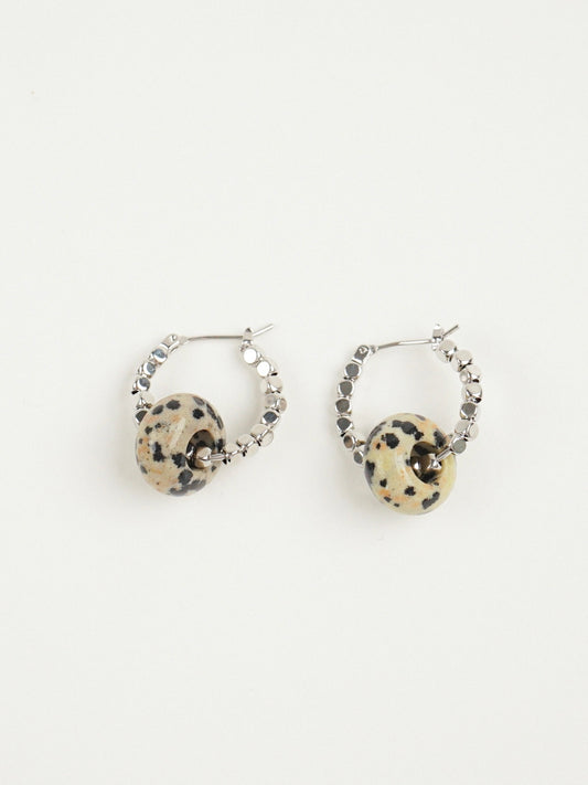 PE1634 D E T A I L S- Brass- Rhodium plated- Dalmatian JasperM E A...